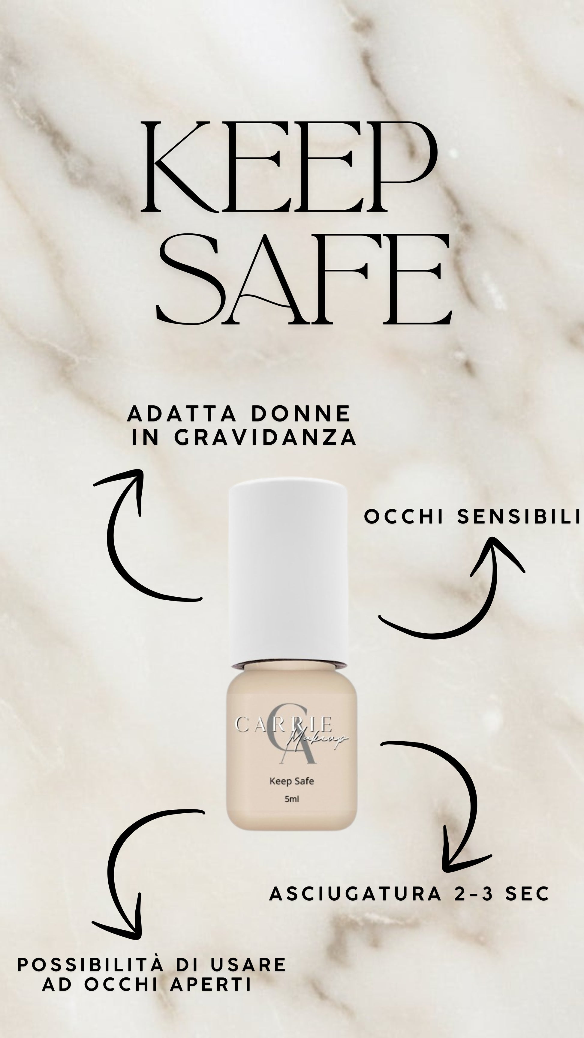 La mia colla KEEP SAFE è una colla formulata specificamente per occhi sensibili o donne in gravidanza. La sua formula più delicata consente di prevenire il rischio di irritazioni.